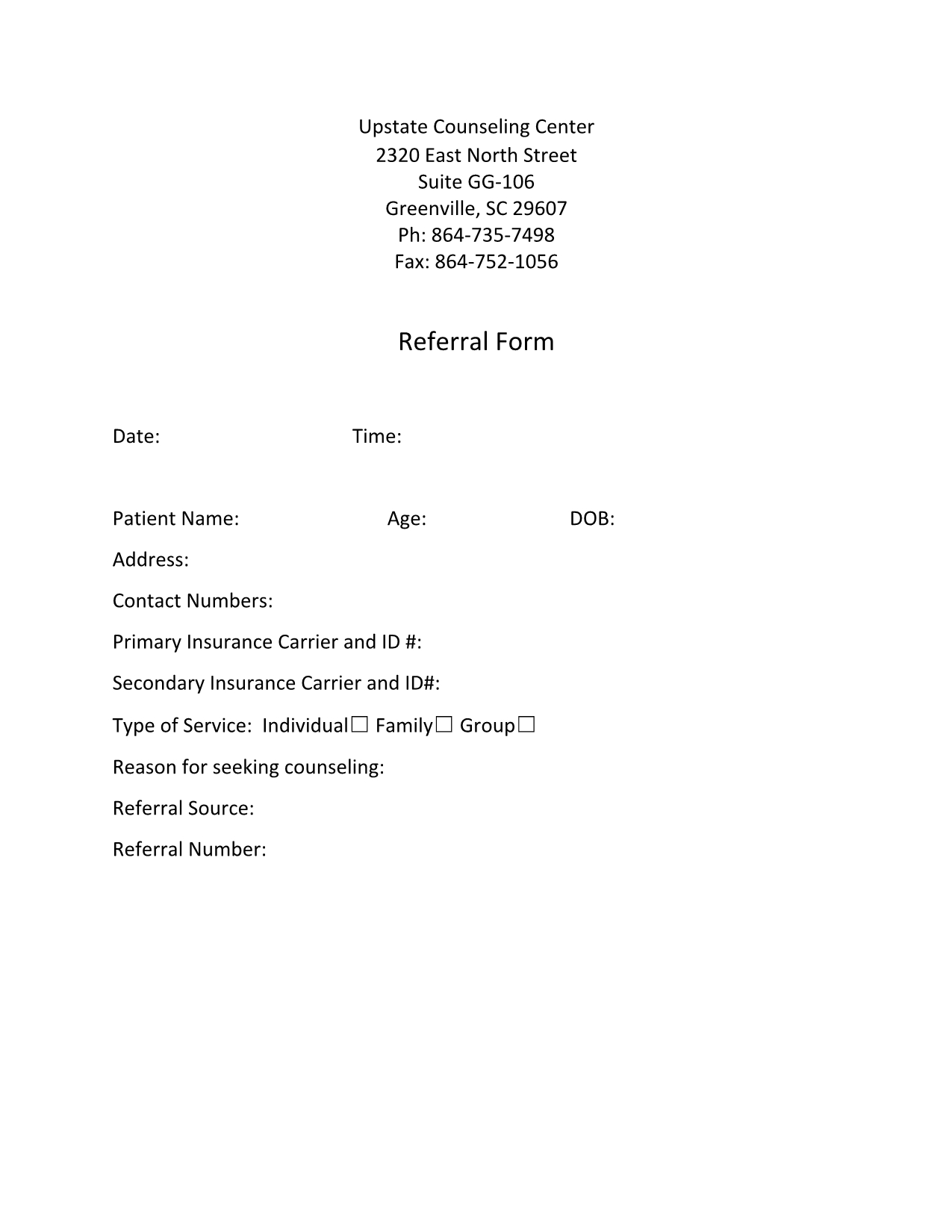- Client Psychotherapy Intake Form